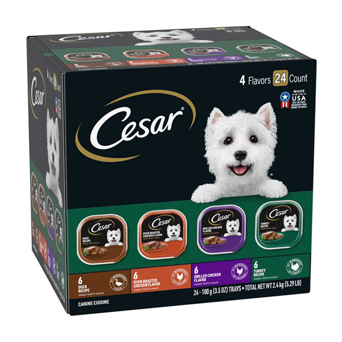 CESAR Soft Wet Dog Food Classic Loaf in Sauce Poultry Variety Pack, (24) 3.5 oz Easy Peel Trays