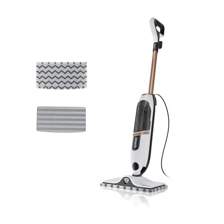Shark SteamSpot Corded Steam Mop with Steam Blaster for Hard Floors in White with XL Removable Tank, Washable Pads, S2001