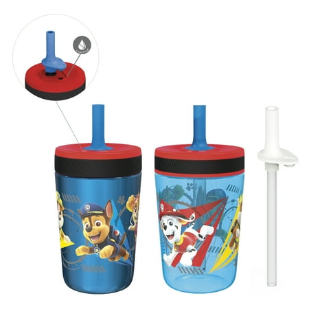 Zak Designs 12oz and 15oz 2-Pack Straw Tumbler Stainless Steel and Plastic with Additional Straw Leakproof and Perfect for Kids, PAW Patrol