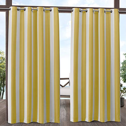 96"x54" Canopy Striped Grommet Top Light Filtering Window Curtain Panels Yellow/White - Exclusive Home