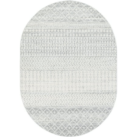 Livabliss Elaziz Boho Moroccan Area Rug,5' x 8' Oval,Gray
