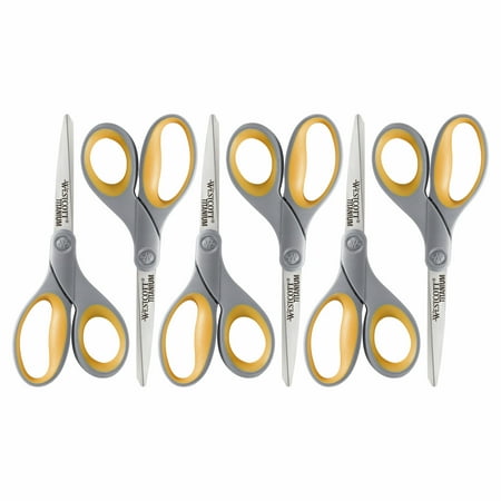 Westcott Titanium Scissors, 7", Straight, Gray/Yellow, for Office, 6 Pack