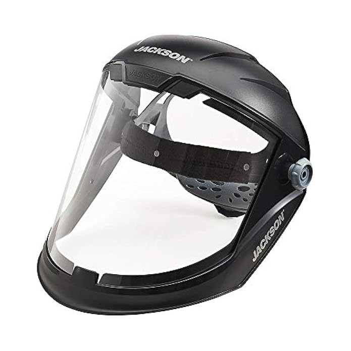 Jackson Safety Lightweight MAXVIEW Premium Face Shield with Ratcheting Headgear, Clear Tint, Uncoated, Black, 14200 (Remove Protective Film Before Use)