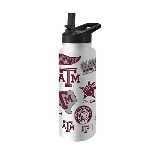 Logo Brands NCAA Texas A&M Aggies 34oz Native Quencher Bottle - Double-Wall Insulated, Stainless Steel, No-Spill Lid, Easy Carry Handle