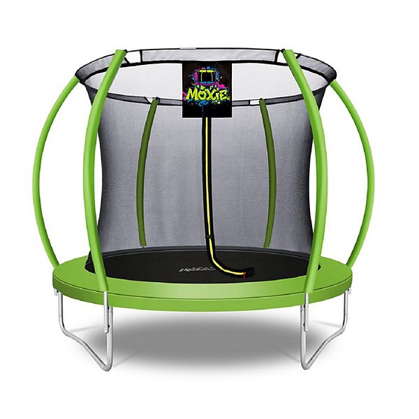 Machrus Moxie 8' Round Pumpkin-Shaped Outdoor Trampoline Set with Safety Net Enclosure - Green
