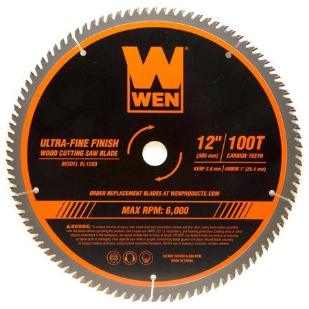 WEN Products 12-Inch 100-Tooth Carbide-Tipped Ultra-Fine Finish Professional Woodworking Saw Blade for Miter Saws and Table Saws