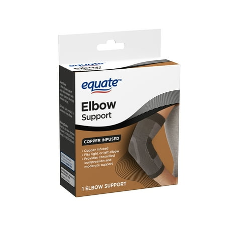 Equate Copper Infused Elbow Support for Compression and Moderate Support, 1 Count (One Size Fits Most)