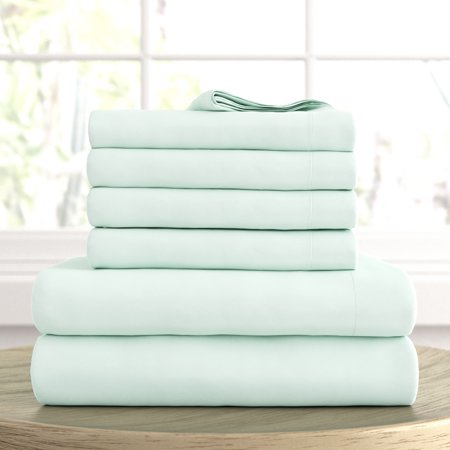 Queen, Mint Solid Microfiber 6 Piece Bed Sheet Set, by Noble Linens
