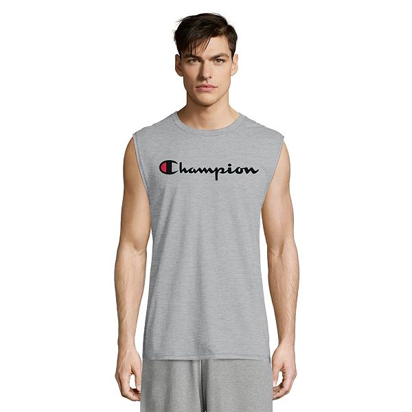 Champion Men's Classic Jersey Muscle Tee, Screen Print Script, Oxford Gray, Medium
