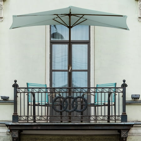 Pure Garden, Half Round Patio Umbrella, 9 ft. Aluminum, Easy Crank, Dusty Green