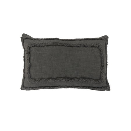 LR Home Modern Tufted Solid Lumbar Throw Pillow, 16" x 24" , Gray