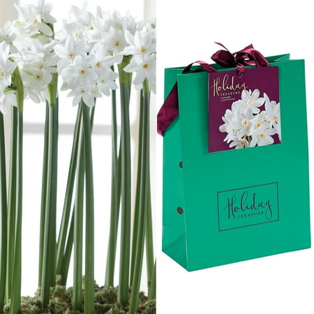Van Zyverden Paperwhite Bulbs In Emerald Gift Bag Set of 6 Bulbs White Part Sun