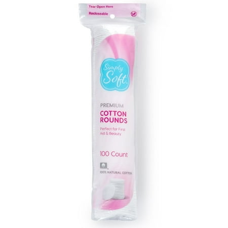 Simply Soft Premium Cotton Rounds, 100% Pure Cotton, Absorbent Cotton Pads, 100 Count (6 Pack)