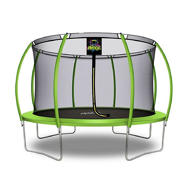 Machrus Moxie 12' Round Pumpkin-Shaped Outdoor Trampoline Set with Safety Enclosure - Green