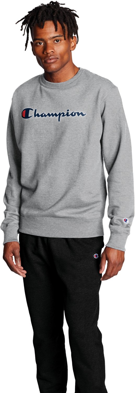 Champion Men's Crewneck Fleece Sweatshirt, Standard Fit, Midweight, Script Logo, Available in Regular and Big & Tall, Oxford Gray - Classic Script Logo, Large