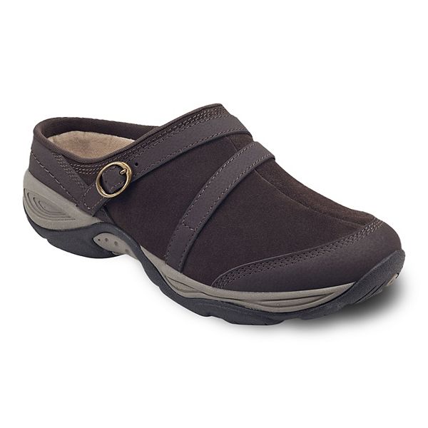 EASY SPIRIT Womens Dark Brown Mixed Media Removable Insole Comfort Arch Support Buckle Accent Equinox Round Toe Wedge Slip On Leather Mules 5.5 M