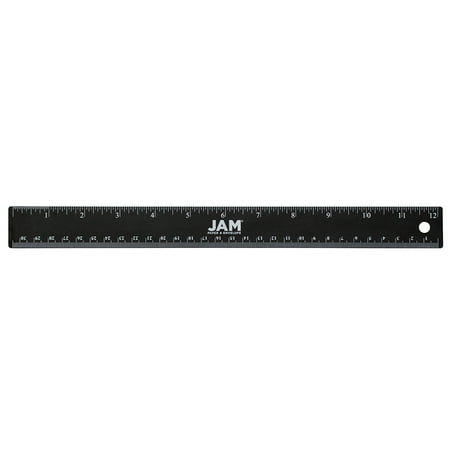 JAM Stainless Steel Ruler, 12 Inch, Metal Ruler with Non-Skid Cork Backing, Black Metallic, 12/Pack