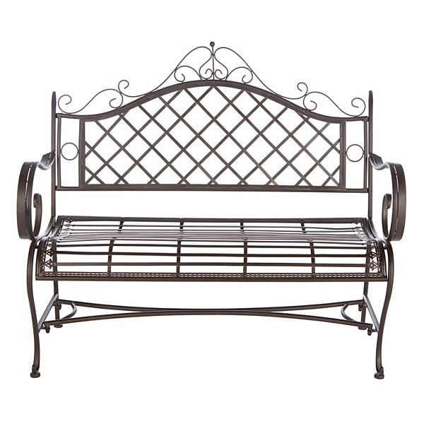 SAFAVIEH Abner Outdoor Patio Wrought Iron Garden Bench, Rustic Brown