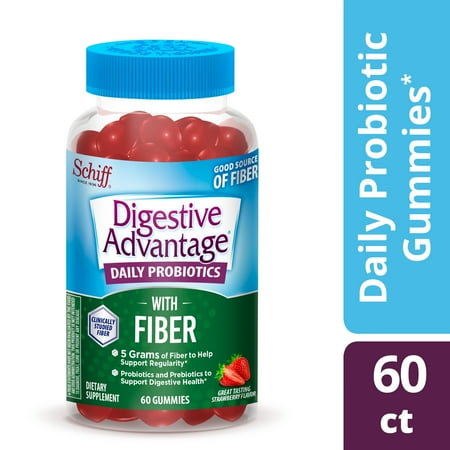 Digestive Advantage Probiotics For Women And Men, Prebiotics Fiber For Gut Health, Strawberry Flavor, 60 Gummies
