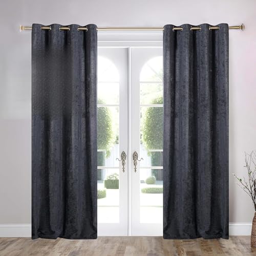 Superior Chenille Curtains, Semi-Blackout, Room Darkening, Sun-Blocking Drapes, Soft Velvety Window Covers, Bedroom, Kitchen, Living Room Accent, Noor Collection, Set of 2 Panels, 52" x 84", Charcoal