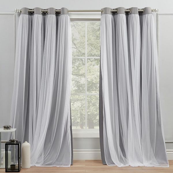 Set of 2 (120"x52") Catarina Layered Solid Room Darkening Grommet Top Curtain Panels Gray - Exclusive Home