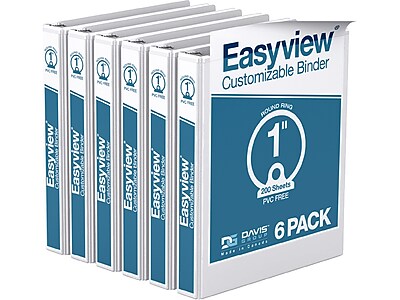 1" Premium Round Ring Binder 6pk Customizable View White - Easyview: Hard Cover, 200 Sheet Capacity, 2 Pockets