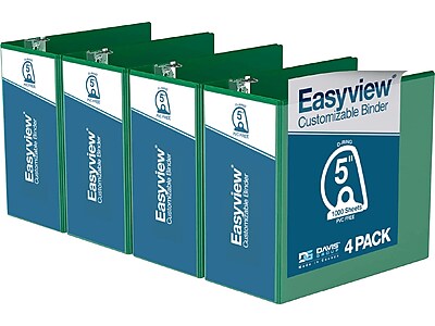 Davis Group Easyview Premium 5" 3-Ring View Binder, Green, 4/Pack (8407-04-04)