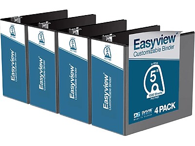 5" Premium Angle D Ring Binder 4pk Customizable View Black - Easyview