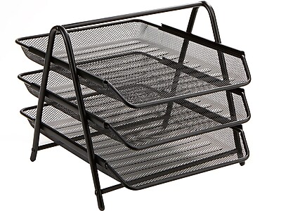 Mind Reader 11.5 in. L x 13.75 in. W x 10 in. H 3-Tier Paper Tray, Desktop Organizer, File Storage, Black (2-Pack)