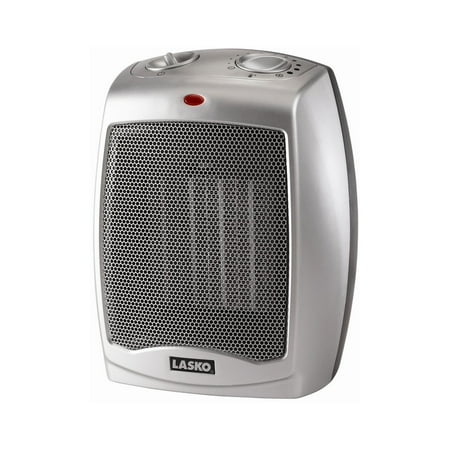 Lasko 9" 1500W Electric Ceramic Space Heater with Adjustable Thermostat, Silver, 754200, New