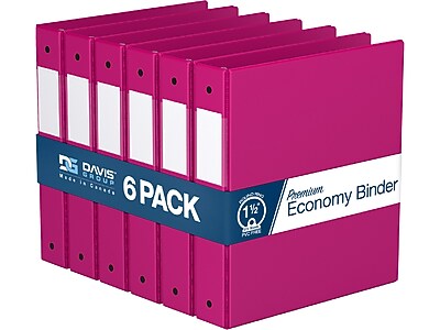 Davis Group Premium Economy 1 1/2" 3-Ring Non-View Binder, Pink, 6/Pack (2312-43-06)