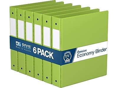 Davis Group Premium Economy 1 1/2" 3-Ring Non-View Binder, Lime Green, 6/Pack (2312-24-06)