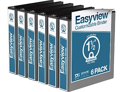 Davis Group Easyview Premium 1 1/2" 3-Ring View Binder, Black, 6/Pack (8412-01-06)