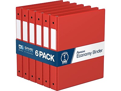 Davis Group Premium Economy 1" 3-Ring Non-View Binder, Red, 6/Pack (2311-03-06)