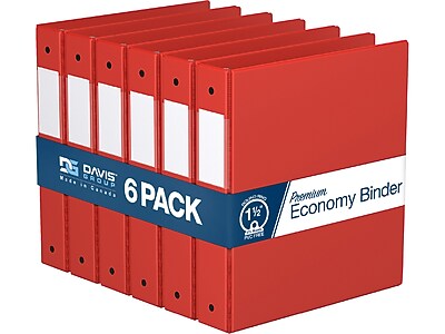Davis Group Premium Economy 1 1/2" 3-Ring Non-View Binder, Red, 6/Pack (2312-03-06)