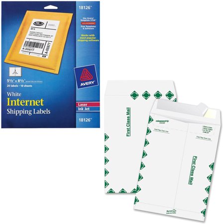 Avery White Shipping Labels with TrueBlock Technology 18126, 5-1/2" x 8-1/2", 20pk and Quality Park Survivor Tyvek First Class Envelopes Bundle