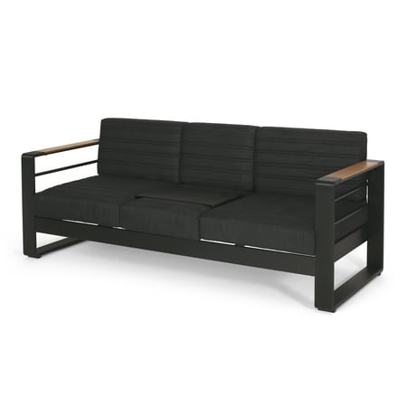 Noble House Negley Cushion Aluminum Outdoor Sofa - Black/Dark Gray