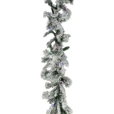 Fraser Hill Farm 9-Ft Mountain Pine Flocked Artificial Garland with Dual Multicolor & Warm White LED Lights, FFMP108GL-6SN