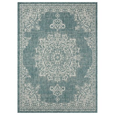 6'6" x 9'2" Country Azalea Indoor/Outdoor Rug Teal Blue - Nicole Miller: Woven Polypropylene, UV & Weather-Resistant