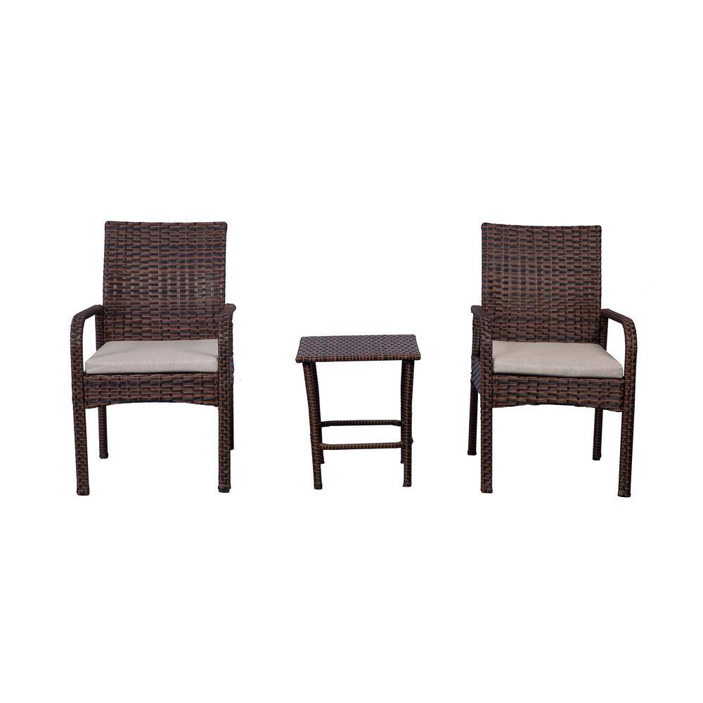 WESTIN OUTDOOR Layla 3-Piece Wicker Outdoor Bistro Set with Beige Cushions