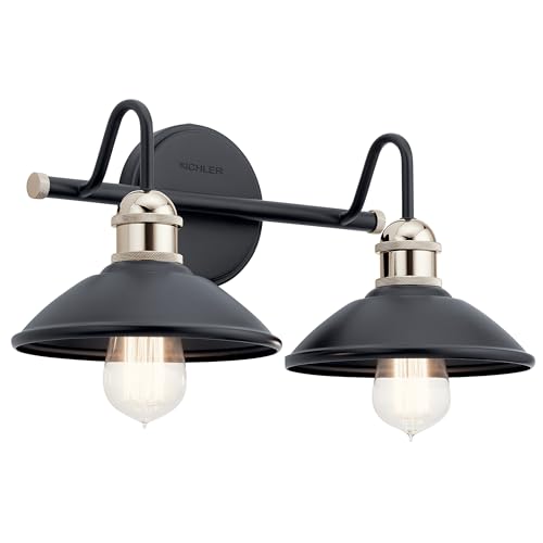 Kichler Clyde 2 Light Bathroom Vanity in a deep Black Finish, for Bathrooms, (7.25" H x 17" W x 8.25" Ext.), 45944BK