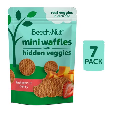 Beech-Nut Mini Waffles Butternut Berry Hidden Veggies Toddler Snack, 3.2 oz Bag (7 Pack)