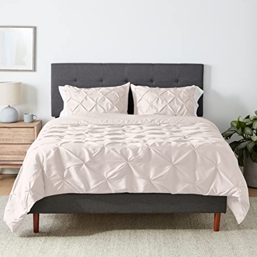 Amazon Basics Pinch Pleat All-Season Down-Alternative Comforter Bedding Set, Full/Queen, Cream