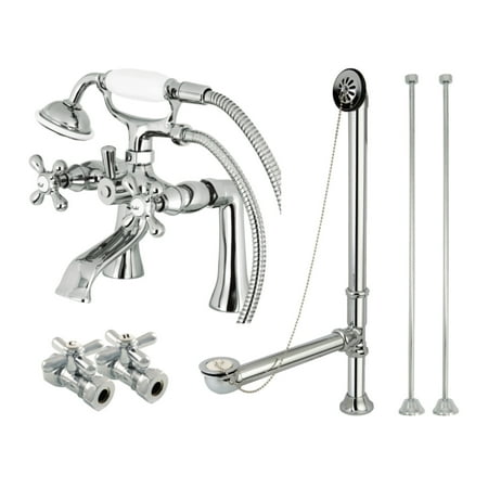 Kingston Brass CCK268C Vintage Deck Mount Clawfoot Tub Faucet Package with Supply Line, Hand Shower and Tub Drain, Polished Chrome