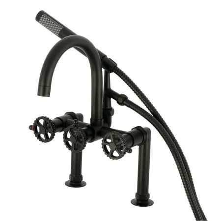 Kingston Brass AE8100CG Fuller 7" Center Deck-Mount Clawfoot Tub Faucet with Hand Shower, Matte Black