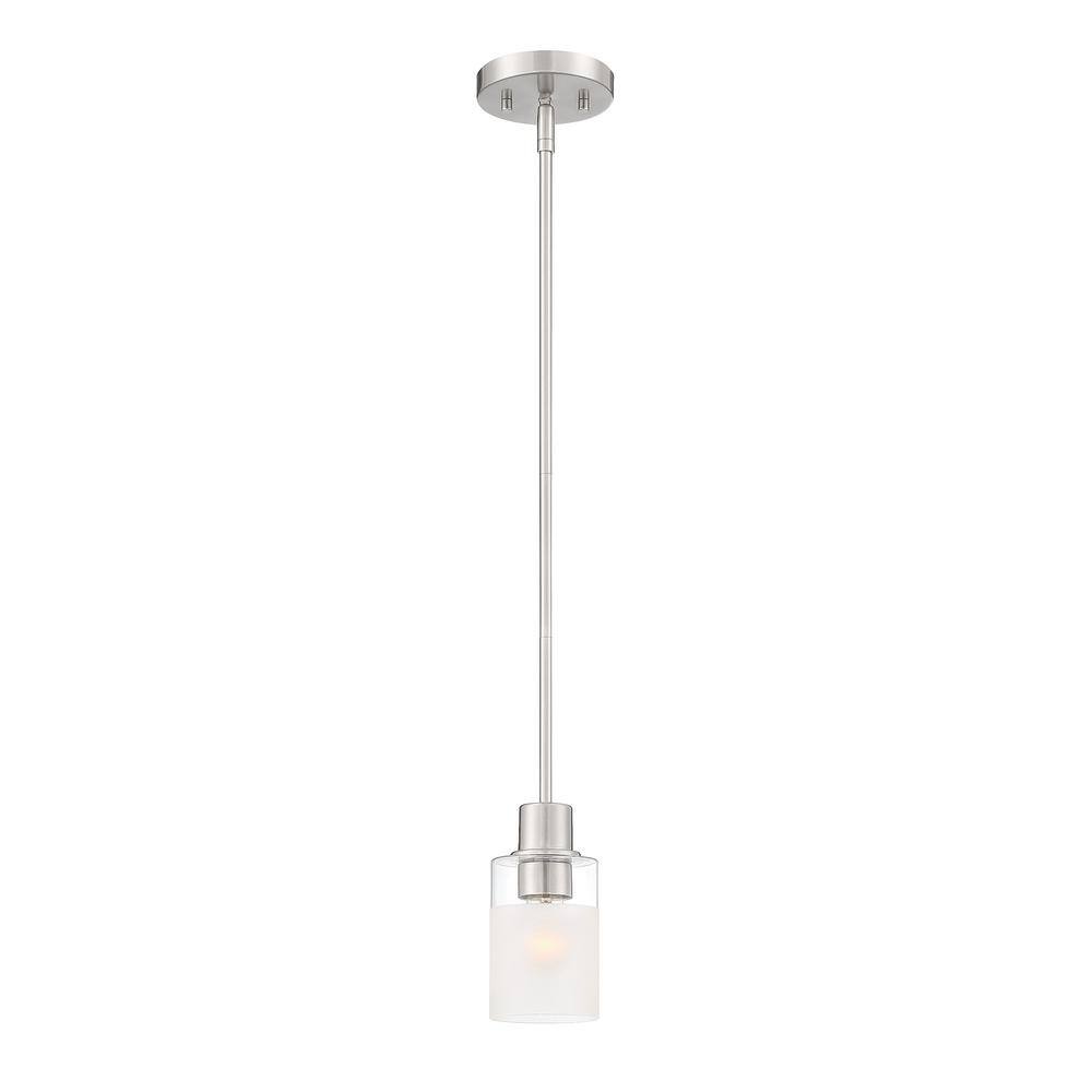 Designers Fountain Cedar Lane 60-Watt Modern 1-Light Brushed Nickel Pendant with Clear and Etched Glass Shade