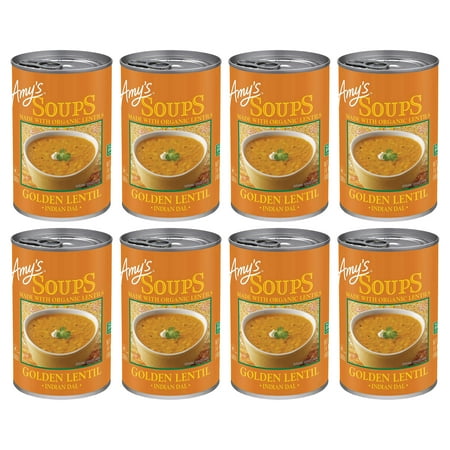 (8 pack) Amy’s Soup, Plant-Based Golden Lentil Soup, Gluten Free, Made With Organic Red Lentils and Vegetables, Canned Soup, 14.4 Oz
