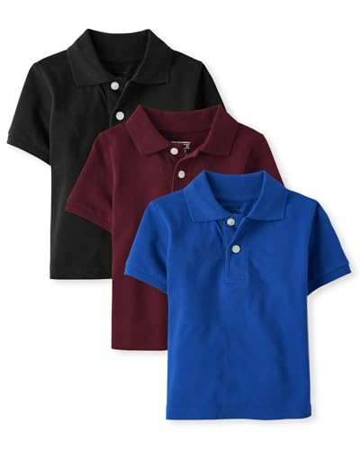 The Children's Place Baby Boy's and Toddler Multipack Short Sleeve Pique Polos, Redwood/Renew Blue/Black 3-Pack
