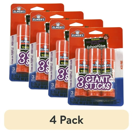(4 pack) Elmer's Giant Disappearing Purple Washable School Glue Sticks, 0.77 oz, 3 Count