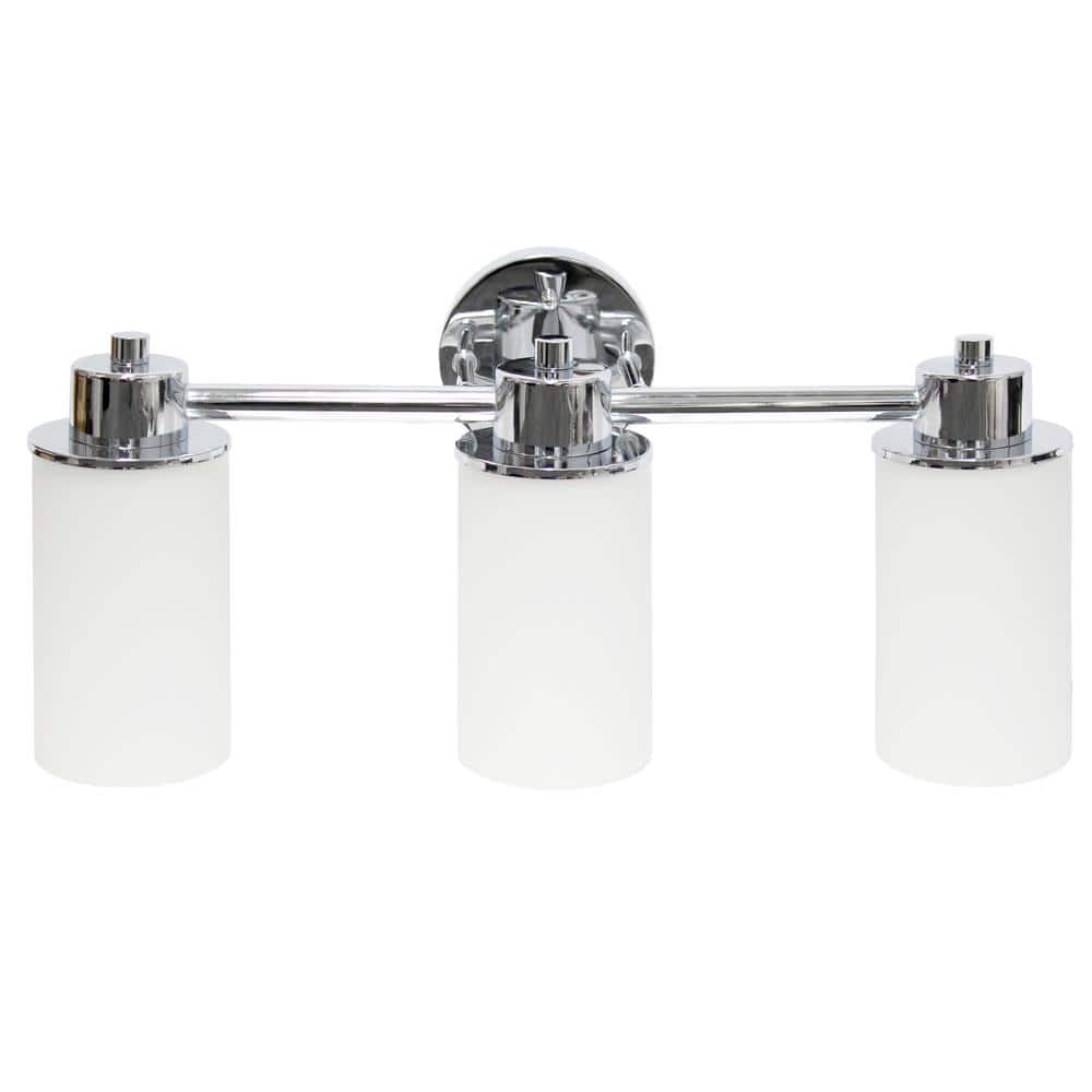 6.50 in. 3-Light Chrome and Opaque White Metal and Glass Shade Vanity Uplight Downlight Wall Fixture